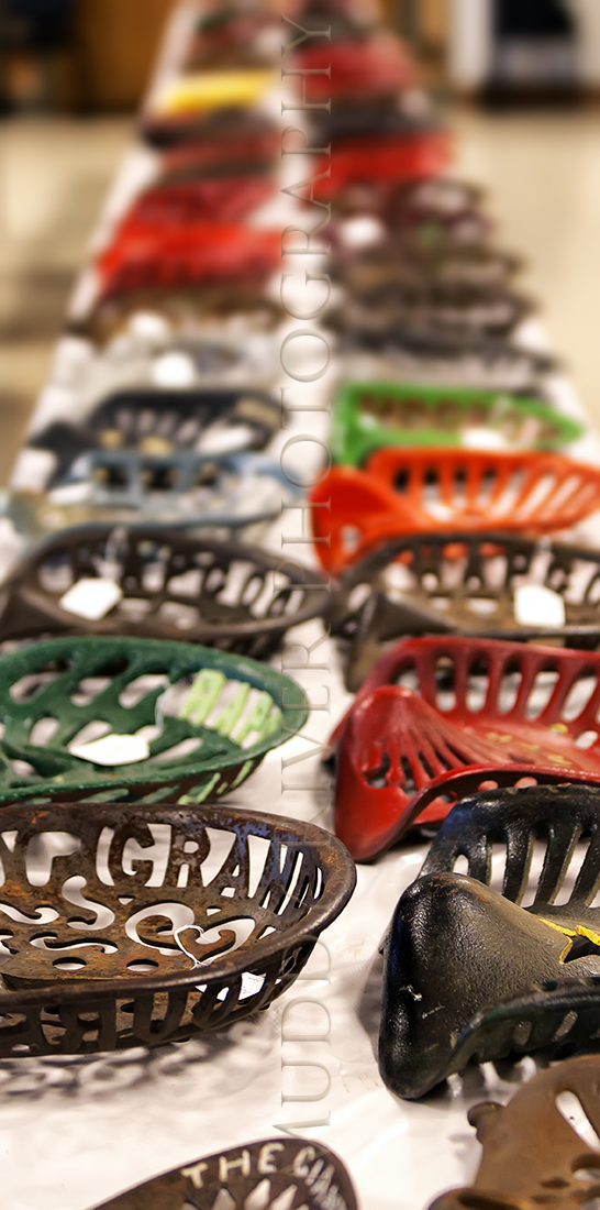 This past Tuesday I had the pleasure of attending and photographing a tractor and farm implement seat auction at the American Legion in Winona. AK & S Auctions conducted the sale that consisted of 350 plus cast iron seats from a collection of the late Loren Fimian. I thought it would be a great opportunity to photograph a rare and unique auction. Although the crowd was not huge, there were serious buyers and collectors from across the country. To my surprise there is an organization comprised of these collectors that has catalogued these unique seats.